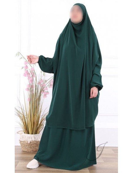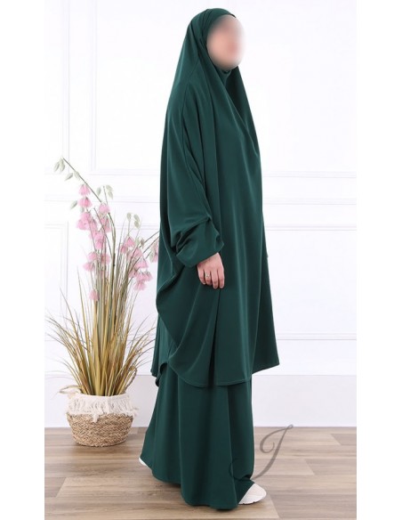 Jilbab 2 Pièces Vert Bouteille Jamila