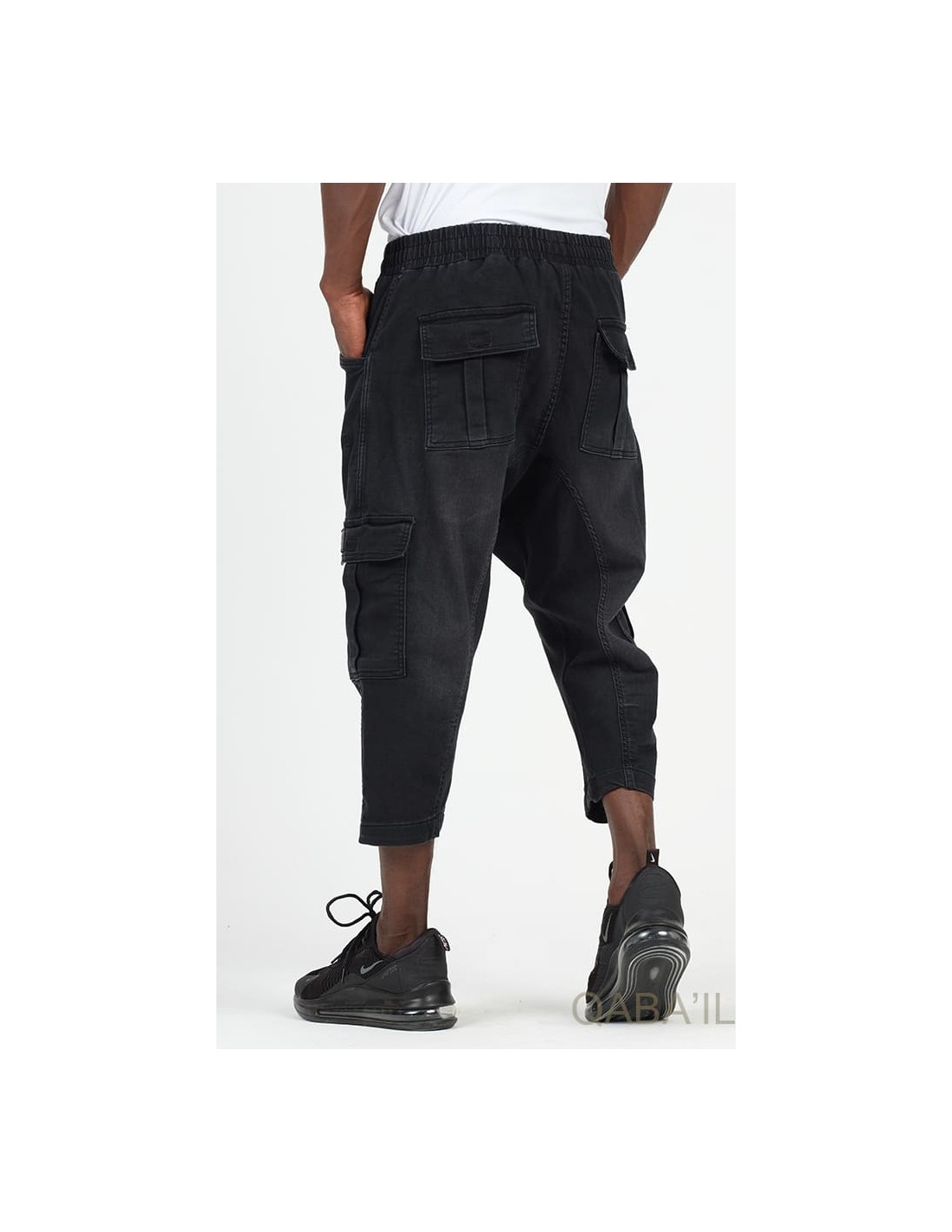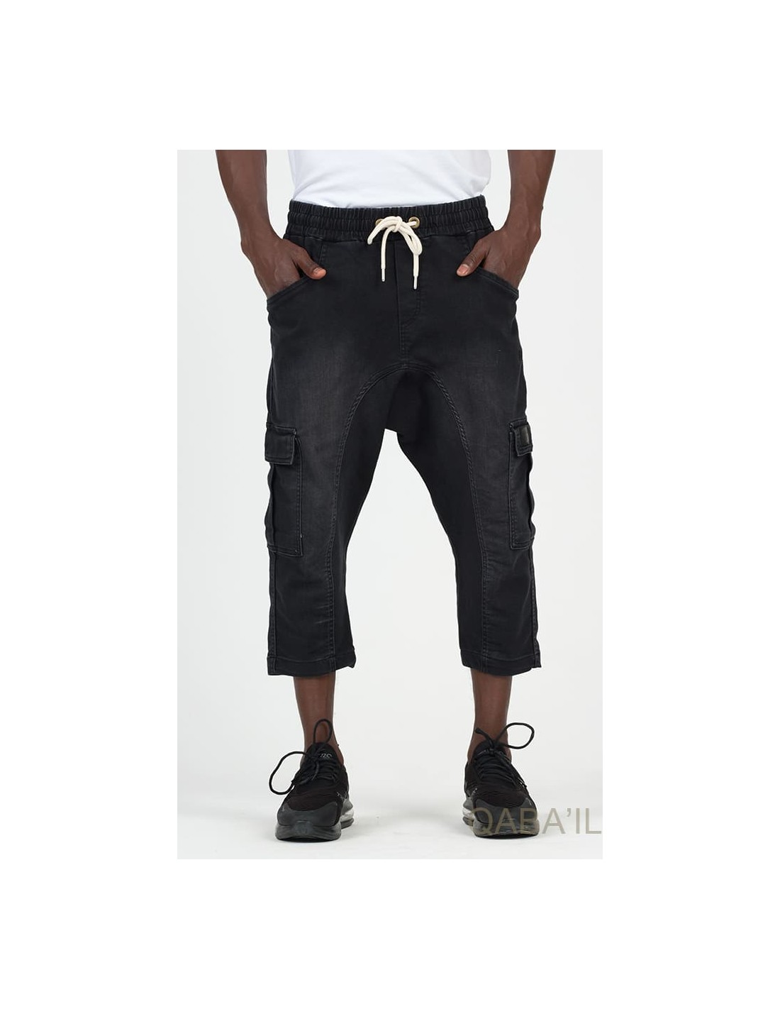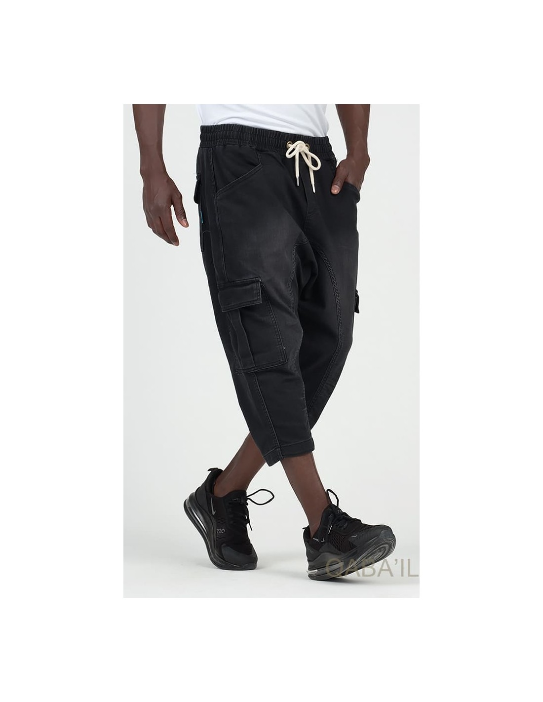 Sarouel Pantacourt Cargo Jean Stretch Noir Qaba'il