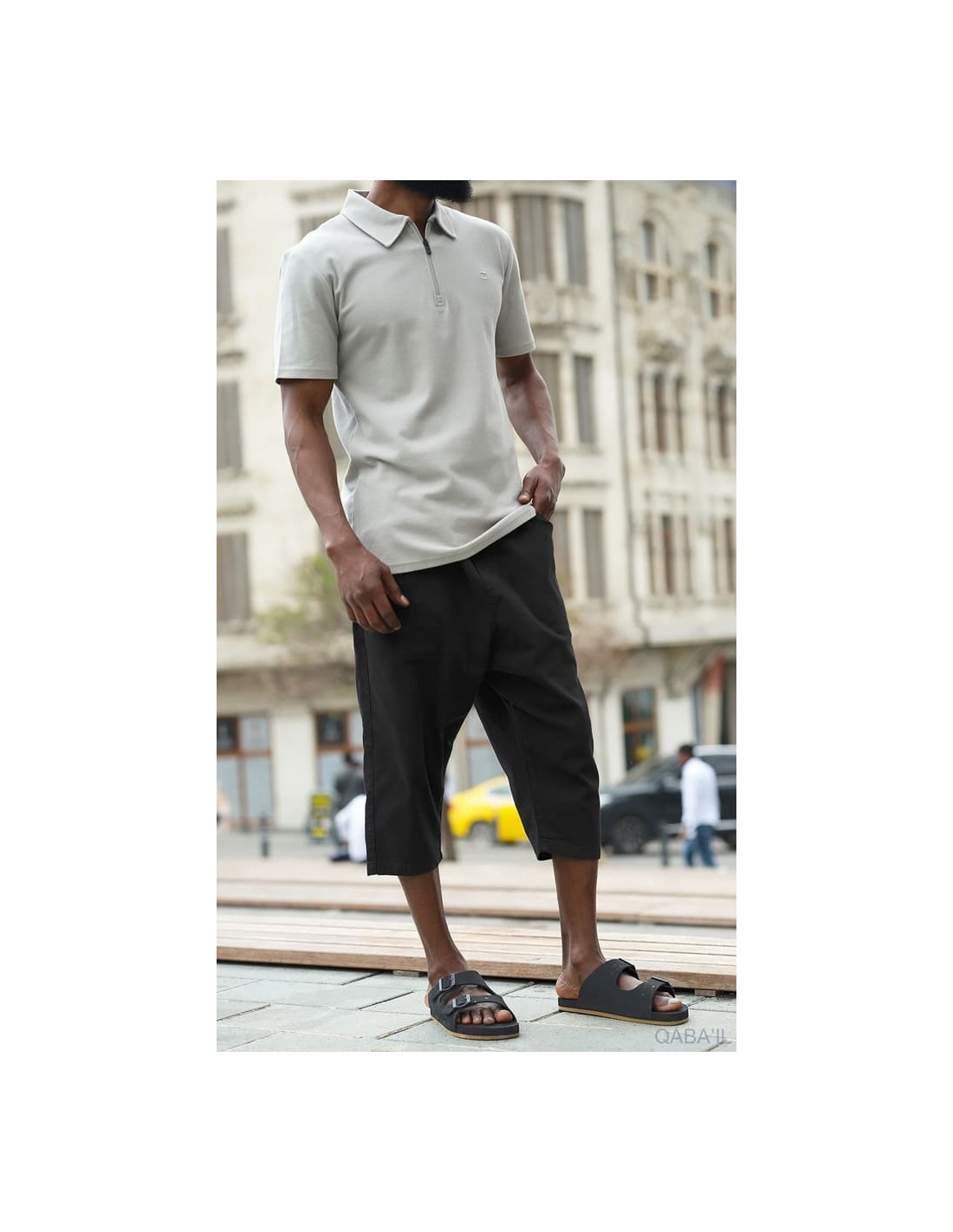 Sarouel Bermuda Coton Stretch S25 Noir Qaba'il