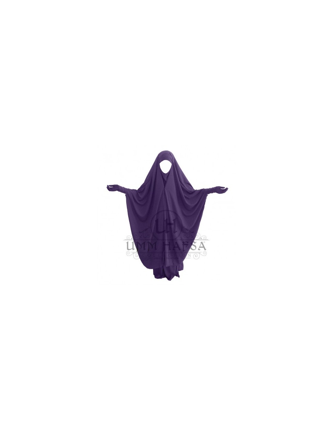 De Umm Hafsa jilbab bestaat uit een uitlopende rok en een brede cape met clips en heeft een kinbeschermer en een geïntegreerde hoofdband. De manchetten worden op hun plaats gehouden door een sluiting met twee clips voor een betere pasvorm.
