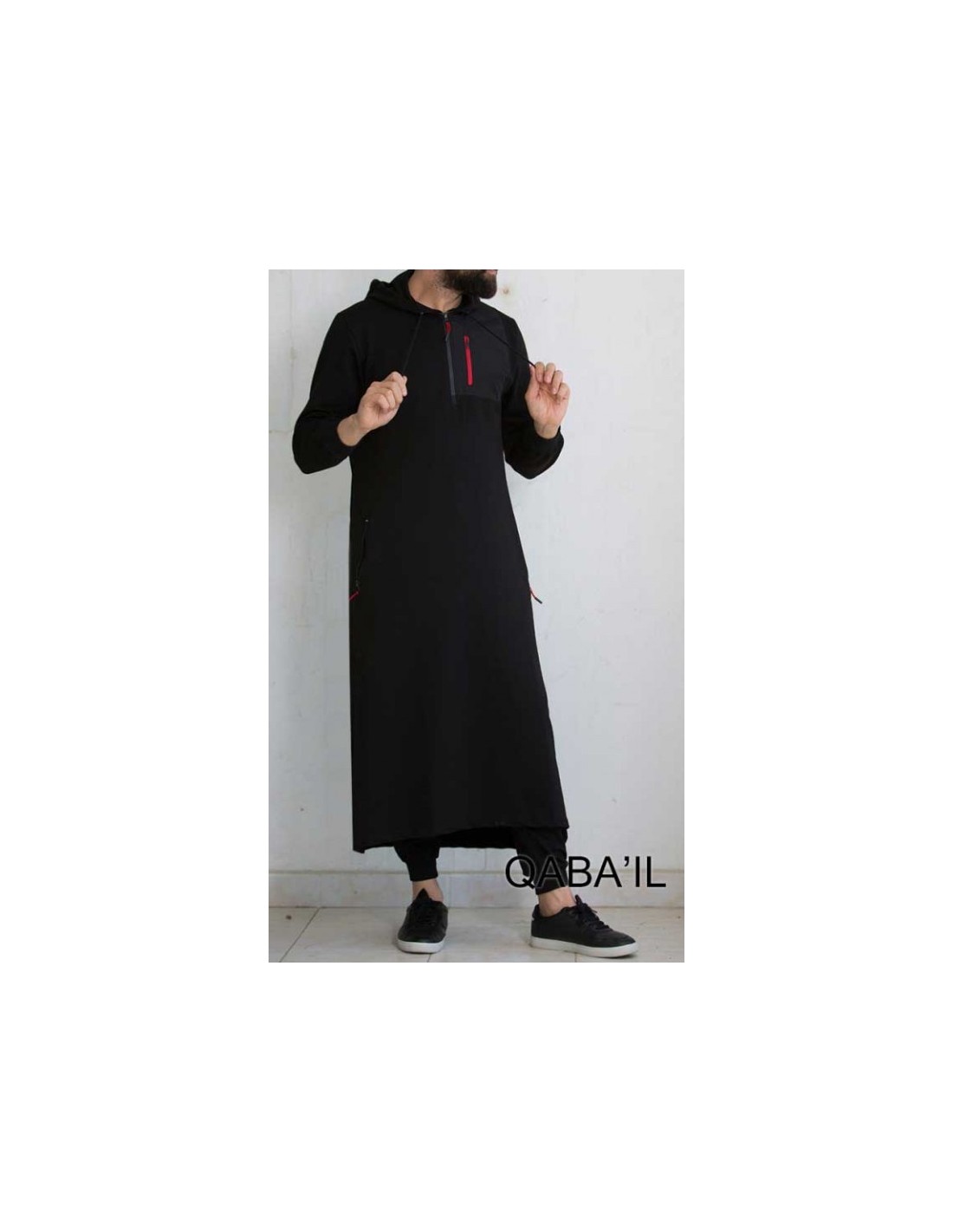 Qamis qaba'il atletisch zwart