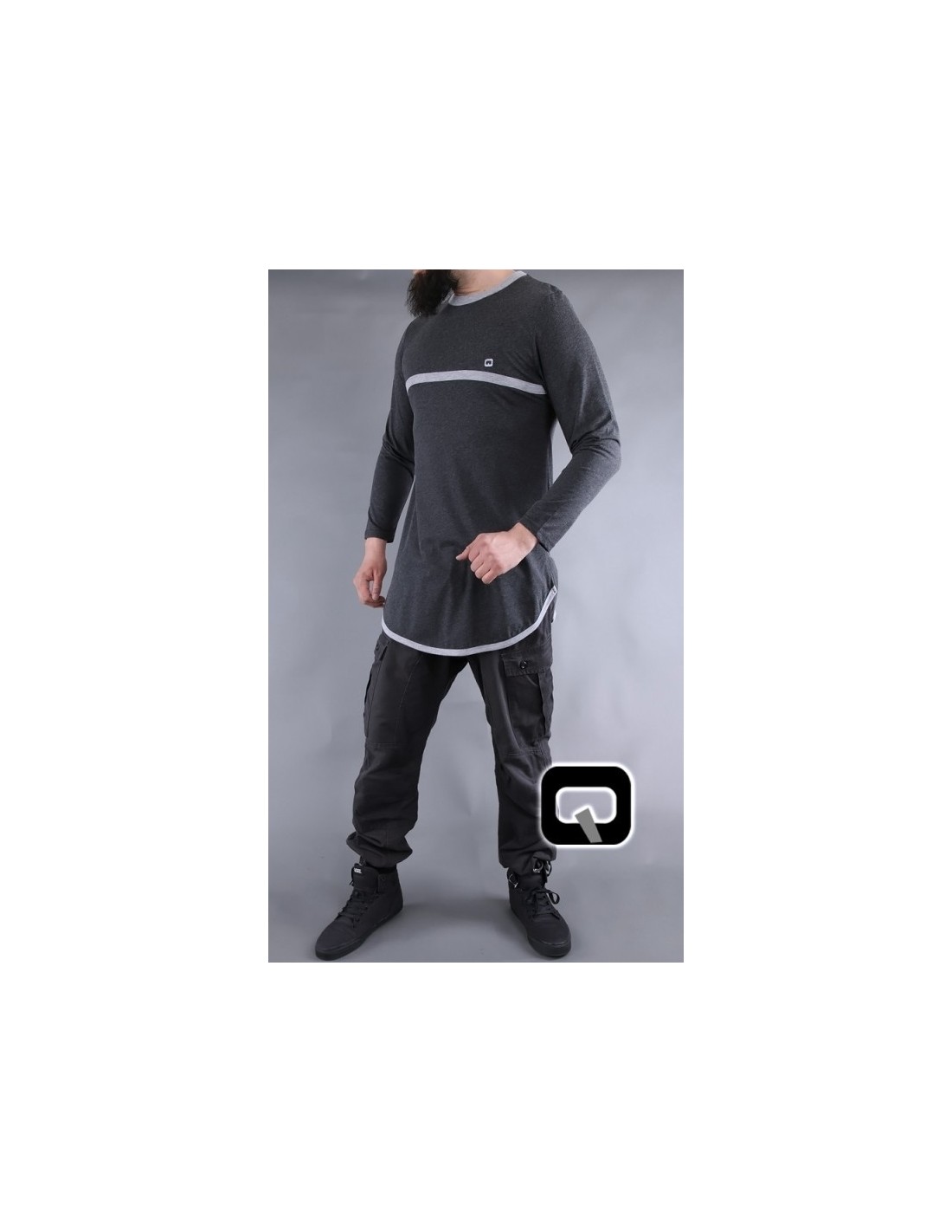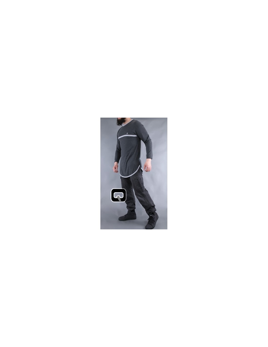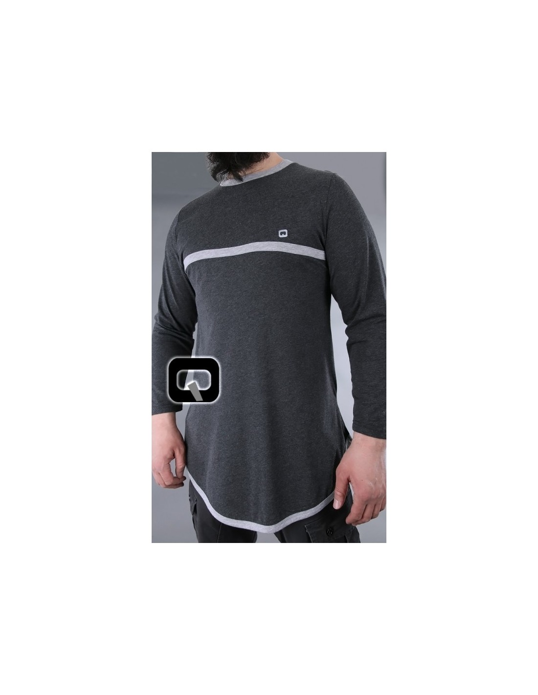 Donkergrijs qaba'il T-shirt met lange mouwen